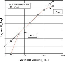 Es wird darauf hingewiesen, dass die Größe der Exponenten n in den oben diskutierten Gleichungen auch von der jeweils gewählten Verschleißkenngröße, z.  B. WM, WM/M, WM/t, abhängig sein kann. Einzelheiten enthält [23].