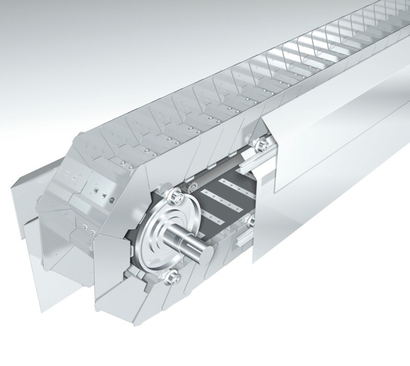 Mit dem BEUMER-Gurtstahlzellenförderer sind die Neigungswinkel bis zu 45 ° realisierbar. Durch die Verwendung des Gurtes wird ein Verschleißen des Zugträgers praktisch vermieden. Eine Schmierung des Systems ist ebenfalls nicht erforderlich, was einen Beitrag zur Umweltschonung leistet. Besonders geeignet ist dieser Förderertyp auch für Anlagenmodernisierungen. Durch die höhere Fördergeschwindigkeit können unter Verwendung der vorhandenen Bandgerüste und Stahlbaubrücken größere Mengen gefördert werden.