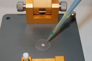 Die Probenpräparation ist sehr einfach. Die pastöse Masse mit definiertem Wasser-Bindemittelgehalt wird direkt auf die Diamant-Messzelle aufgetragen und mittels eines Stempels fest angedrückt. Es können so innerhalb kurzer Zeit beliebig viele Spektren aufgenommen werden. Der Vorteil der Methode liegt darin, dass das zu untersuchende System durch z. B. Abstoppen der Reaktion mit Aceton, abfiltrieren, etc. nicht beeinflusst wird. Die Methode ermöglicht auch die einfache Untersuchung von Reaktionen unter Ausschluss von Luft.