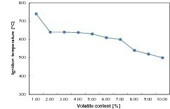 Die Schwierigkeit der Entzündung von Kohlenstaub hängt von dessen Zündtemperatur ab. Je höher die Zündtemperatur des Kohlenstaubs ist, umso schwieriger ist es diesen zu entzünden. Übrigens ist die Zündtemperatur anscheinend proportional zum Gehalt an flüchtigen Substanzen in der Kohle. Die Zündtemperatur von bituminöser Kohle mit Vad  >  25  % beträgt etwa 500 – 600 °C. Sie ist leicht entzündbar und stabil. Bei Anthrazit mit einem geringen Gehalt an flüchtigen Bestandteilen von Vad  > 15  % liegt die Zündtemperatur bei etwa 600 –700 °C. Er ist relativ schwer entzündbar und stabil zu halten. Die gasarme Kohle bewegt sich in einem extrem schwierigen Stabilitätsbereich mit Zündtemperaturen von 700 – 800 °C. Es ist einerseits schwierig sie zu entzünden und andererseits nicht leicht, sie stabil zu halten. Normalerweise benötigt Anthrazit eine höhere Zündtemperatur, besonders wenn die von der Verbrennung der flüchtigen Bestandteile ausgesandte Wärme nicht ausreicht, den Kohlenstaub mit einer Temperatur zu verbrennen, die für die Entzündung von Koks erforderlich ist. Die Entzündung und stabile Verbrennung von Anthrazit ist noch schwieriger.