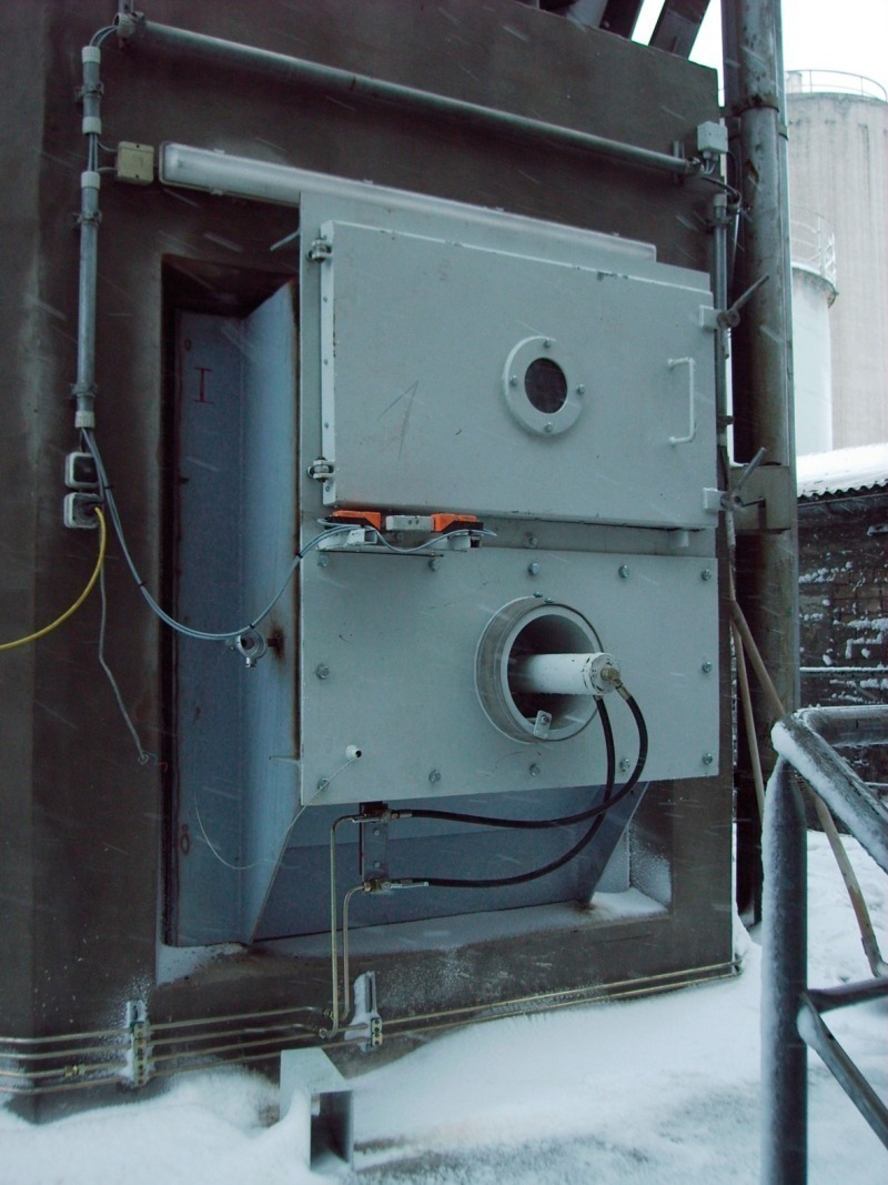 Bei dieser Anzahl von Kalkschachtöfen mit Gas- oder Ölfeuerung sollte die Limitierung der Eberhardt-Produktpalette auf Mischfeueröfen überwunden sein. Zumal nicht unerwähnt bleiben darf, dass bis zum Jahre 1979 bereits 12 Kalköfen dieser Art von Eberhardt in Betrieb genommen wurden und zwischenzeitlich in puncto Ausmauerung [1], Feuerungssystem und Beschickung modernisiert wurden. Neben der Nachrüstung eines Zünd- und Pilotbrenners wurden die Brennersteuerung und die Flammenüberwachung in einem zentralen Schrank in der Leitwarte der Brennerbühne realisiert (Bild 4). Der negative Einfluss von Wärmestrahlung in der Nähe der Brennkammern ist somit eliminiert und ein störungsminimierter Einsatz garantiert. Bei der Beschickung des Ofens kommen zum einen moderne und mit Sicherheitsbremsen ausgestattete Aufzugswinden Marke Eberhardt zum Einsatz, zum anderen ist die Dichtheit und somit die Möglichkeit eines Falschlufteintritts während des Befüllungszyklus durch eine hydraulisch betriebene Gichtglocke sowie metallisch dichtende und mechanisch bearbeitete Dichtflächen verbessert worden.
