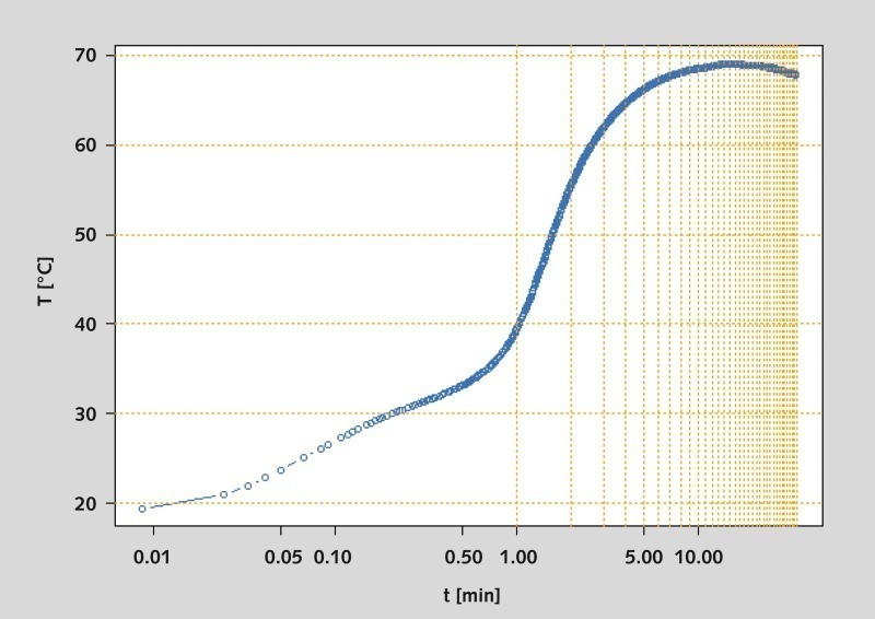 Diese Auswertung beruht somit ausschließlich auf den Daten zweier Messzeitpunkte (100 %- und 80 %-Umsatz), obschon der Verlauf der gesamten Reaktion aufgezeichnet wird. In den Anwendungs-Laboratorien wird diese Auswertung häufig sogar auf einen einzelnen Wert reduziert. In diesen Fällen wird nur die benötigte Zeit bis zum Erreichen einer definierten Temperatur betrachtet. Damit gehen wertvolle Informationen für die Brennprozesssteuerung und die Qualitätssicherung verloren.