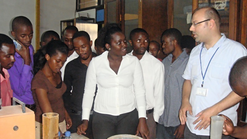 Im Anschluss fand an der Universität von Dar es Salam ein zweitägiges Trainingsprogramm für Masterstudenten und Doktoranden aus Tansania, Ruanda, Uganda, Burundi, DR Kongo, Südafrika und Mosambik statt. Eröffnet wurde das Programm von Prof. Mrema (University of Dar Es Salaam) mit einem Vortrag über alternative zementäre Materialien, gefolgt von einem Vortrag zu Grundlagen der Rheologie und dem Beitrag der Baustoffchemie zu Innovationen im Betonsektor von Wolfram Schmidt (BAM). Danach folgte ein Vortrag von Ryan Bradley (University of the Witwatersrand) über den Einfluss von Windlasten auf Schalenstrukturen sowie ein Vortrag über Anwendungsregeln für den Spritzbetonbau von Prof. Regina Stratmann-Albert (FH Darmstadt), die den Kursen als Gastreferentin beiwohnte. Abschließend führte Wolfram Schmidt durch einen Laborworkshop in dem die Studenten anhand praktischer Versuche an Fragestellungen der Packungsdichteoptimierung sowie die Wirkungsweise von Polycarboxylatethern und Polysacchariden zur Steuerung der Rheologie des Betons herangeführt wurden (Bild 2).