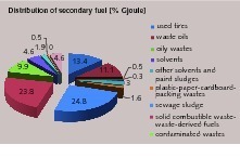 der Prozentsatz von sekundären Brennstoffen (aufbereitetet Abfälle) zum gesamten Brennstoff 2,38 % und die durchschnittliche direkte CO2-Emission 853 kg CO2/t Klinker.