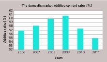 Nach den statistischen Daten des TCMA (Bild 5) hat die Menge von Zement mit Zusatzstoffen zugenommen. In den letzten Jahren hat diese Tendenz jedoch abgenommen. Das kann auf ein Gleichgewicht von Angebot und Nachfrage zurückzuführen sein. Die Produktion von Zement mit Zusatzstoffen sollte nicht nur den Verbrauch fossiler Brennstoffe reduzieren, sondern auch die Menge der Kohlendioxidemission verringern. Nach dem offiziellen Bericht mit dem Titel „Vergleichende Bewertung im Zementsektor 2011“ und entsprechenden Daten aus dem türkischen Ministerium für Energie und Natürliche Ressourcen