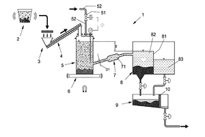 (57) Apparatus and method for recovering precious metals from contaminated cement, comprising, in order of process, a crusher, in which a cement-metal