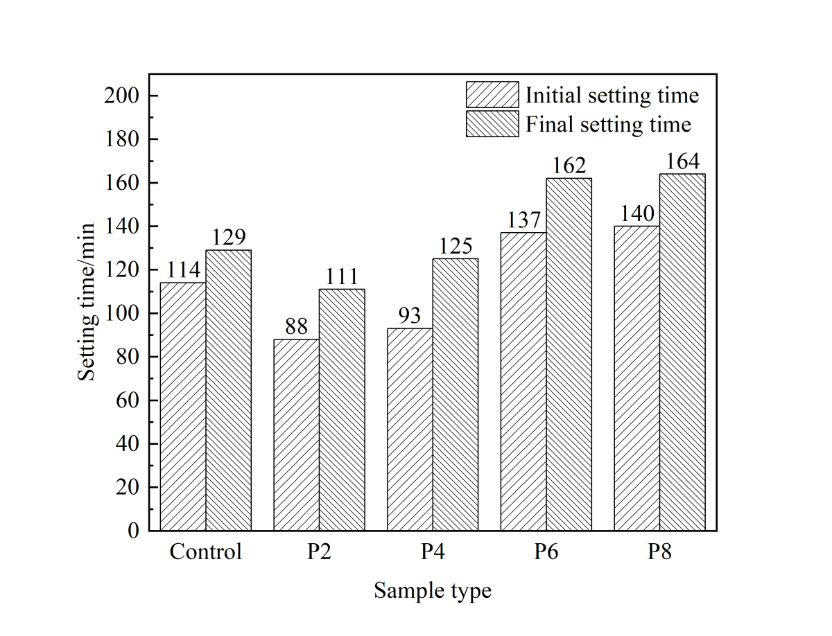 Figure 2 shows the influence of different dosage of styrene-acrylic latex on the setting time of SAC paste.