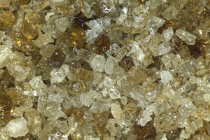 The glass content of GBS is important for its latent hydraulic reactivity. In a cementitious system with a high pH value only the glassy phase is corroded resulting in Calcium-Silicate-Hydrates formation whereas crystalline blast furnace slag of the same chemical composition is an inert material. The glass content of the smelter slags has been determined according as well by the transmitted light microscope counting method [13] as by quantitative XRD. The results are given in Table 2. All smelter slags showed a very high glass content of nearly 100 wt.-%. The requirement of the relevant standards EN 197-1 and EN 15167-1 is only “two third”. But it is well-known that most of the GBS currently produced worldwide has a significant higher glass content. As an example, Figure 7 shows the qXRD analysis for the smelter slag No. 3. The typical „glassy hump“ is very distinctive.