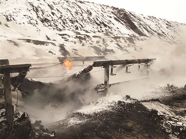 The fugitive material hazards posed around the belt return begin with the discharge at the head pulley. An insufficiently cleaned belt can cause carryback to drop along the entire belt path and spill into walkways or on the return belt. This produces a trip hazard and a possible violation. In addition, dust can get into cracks and divots in the belt, release along the belt path, and foul gears and bearings of rolling components, causing them to seize and creating a possible fire hazard.