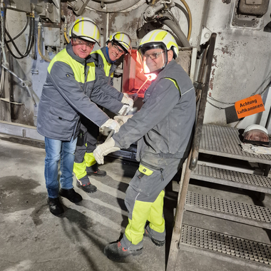 This year, Dr Christian Dörfel, Member of the Provincial Parliament, performed the ceremonial lighting of the oven. He was supported by production foreman Maximilian Schörkhuber and Johann Wiggenhauser, who is responsible for the plant infrastructure.
