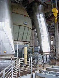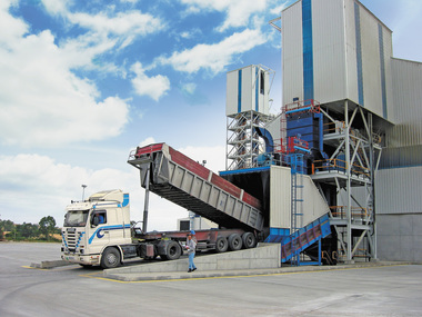 The first set of elevators (Figures 1 and 2) consists of two connected bucket elevators that take feed material from the existing conveyor belts and, can either continue feed to existing grinding units, or divert feed to the new grinding plant. The conveyor belts will feed a diverter gate to the bucket elevator which feeds the hoppers.