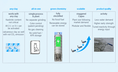 Referring to the business case, the economic viability of meca® clay is notably enhanced in regions where electricity prices are low. Given the energy-intensive nature of the activation process, access to affordable electricity significantly reduces operational costs, making it particularly suitable for provinces with favorable energy tariffs. meca® clay does not require a high kaolinite content, enabling the use of low-clay sources. This flexibility significantly enhances cost-efficiency and broadens the applicability, while contributing to the utilization of locally available or waste-derived materials.
