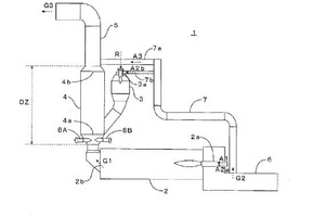 (57) To more effectively denitrify a cement-kiln discharge gas in an RSP-type burning device for IC cement. [Solution] A burning device 1 for cement comprises: a rotary kiln 2; a mixing chamber 4 disposed between the rotary kiln and a lowermost cyclone; a flash- and swirl-type calciner 3 disposed between the mixing chamber and a M second-lowest preheater cyclone; a clinker cooler 6 for cooling a cement clinker discharged from the rotary kiln; and a cl gas duct 7a for introducing a discharge gas G2 from the clinker cooler into a region located after the outlet of...
