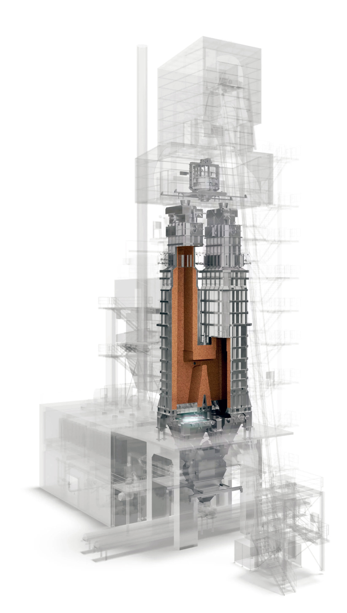 Insulated exhaust gas ducting was routed across the plant by Hauri according to Gebr. Pfeiffer’s specifications. This serves as a hot gas supplier for the grinding plant.