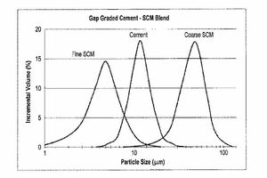 (57) Cement-SCM blends employ particle packing principles to increase particle packing density and reduce interstitial spacing between the cement and SCM particles. Particle packing reduces the amount of water required to obtain a cement paste having a desired flow, lowers the water-cementitious material ratio (w/cm), and increases early and long-term strengths. This may be accomplished by providing a hydraulic cement fraction having a narrow PSD and at least one SCM fraction having a mean particle size that differs from the mean particle size of the narrow PSD...