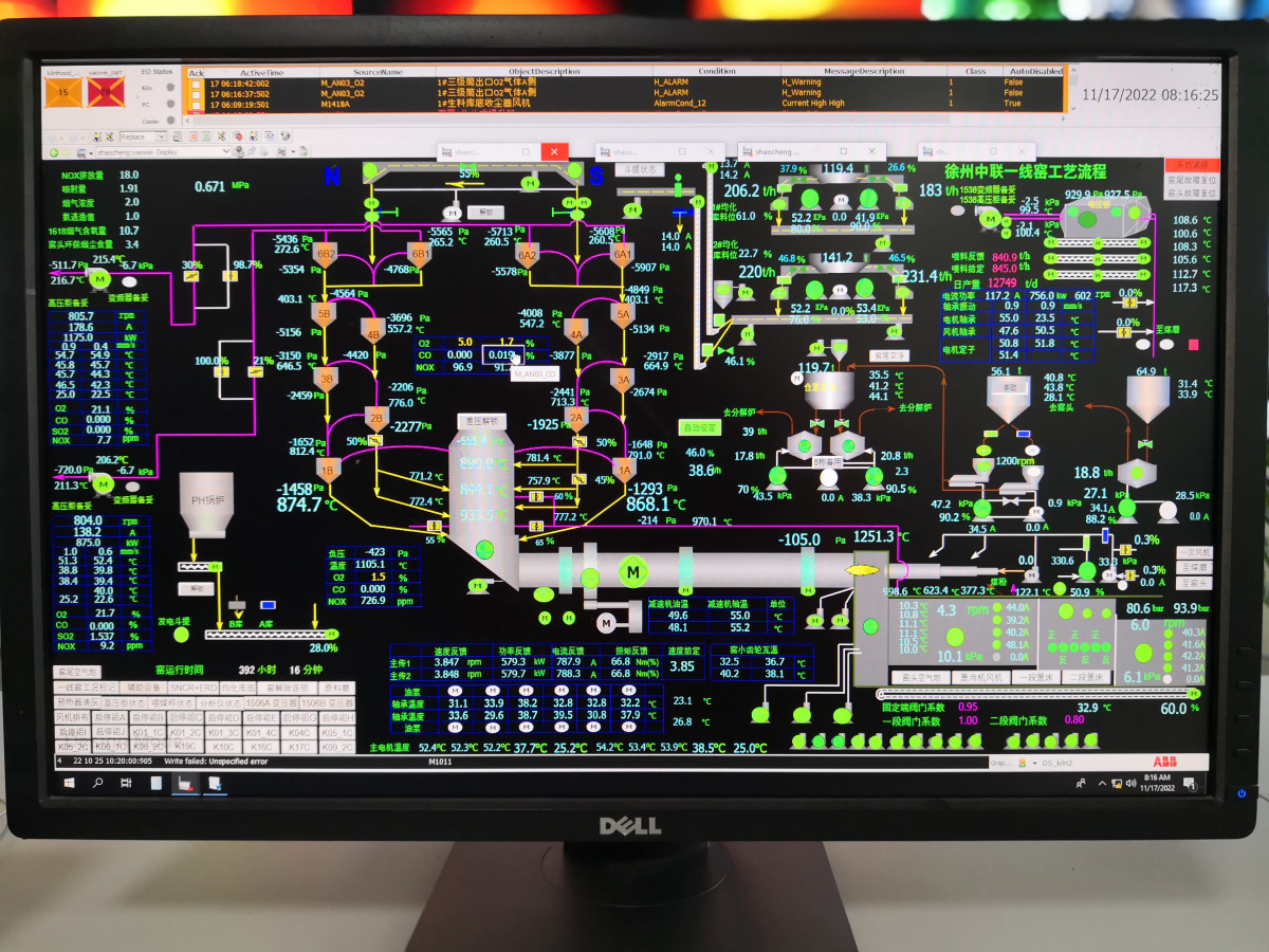 The thermal parameters of key parts of the pyro system were tested during operation, as shown in Table 5. It can be seen from Table 4 and Table 5 that the NOx concentration of the calciner was 315 ppm before ammonia injection, the ammonia consumption was 2.1 kg/t.cl, and the NOx emission concentration was <50 mg/Nm3 at the initial stage of operation, which was 3.3 kg/t.cl lower than that before the upgrading. The NOx emission concentration in autumn and winter was <25 mg/Nm3 as required by the local government during the subsequent operation, striving to reach 18 mg/Nm3. By controlling the opening of the denitration air duct at 60%, the background NOx concentration was reduced to 204 ppm, and the ammonia consumption was 3.6 kg/t.cl. The NOx background concentration (converted into 250-350 mg/Nm3 by 10% O2) of the pyro system was reduced through self-denitrification, and the environmental protection cost was reduced. There were 16 SNCR ammonia injectors in the pryo system. The system has low CO concentration and complete fuel combustion, which not only realized low-coal consumption in pyro system, but also created favorable conditions for ammonia nitrogen reaction in the SNCR system. Refer to Figure 4 for the central control operation of the pyro system upgraded.
