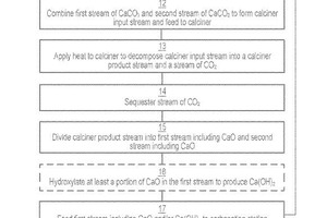 (57) Embodiments described herein relate to capturing and sequestering CO, emissions from the cement production process with the potential to produce carbon-negative cement. Methods described herein can include contacting calcium oxide (CaO) with ambient air at a carbonation station to form a first stream of calcium carbonate, combining the first stream of calcium carbonate with a second stream of calcium carbonate in a calciner to form a combined stream of calcium carbonate, and applying heat to the calciner to decompose the combined stream of calcium carbonate...