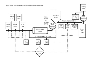 (57) The present invention provides a method and system for manufacturing cement wherein ground particles of cement and calcium sulfate are subjected to infrared sensors, laser sensors, or both, so that emanated, irradiated, transmitted, and/or absorbed energy having wavelengths principally within the range of 700 nanometers to 1 millimeter can be monitored and compared to stored data previously obtained from ground cement and sulfate particles and preferably correlated with stored strength, calorimetric, or other data values, such that adjustments can be made to...