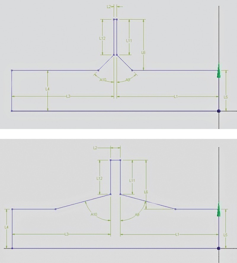The first step is to create a three-dimensional model of the geometry using CAD software with 3D capability. It must be remembered at this stage that in the case of flow simulations the 3D geometry of the flow zone is needed and not that of the structure, as is usual in other types of analysis. Increasingly, the created 3D models are completely parameterized (Figs. 1 and 2) in order to ensure that any modifications in the geometry can be quickly incorporated into the model by simply entering the new dimension, whereupon the entire model and any adjacent zones adapt themselves to the new dimension.