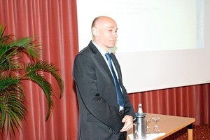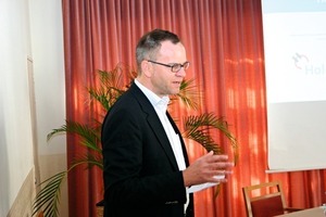 Then Jürgen Lenze presented the product portfolio of the Beckum-based Christian Pfeiffer Maschinenfabrik (CPB). The company was founded in 1925 and they supply plant components, optimize existing plants and design new grinding plants. The job profiles for designers of ball mills were particularly interesting for the future machine builders and process engineers. Further technical developments made it possible that, for example, for some years material handling has been feasible even outside the airflow due to the transfer diaphragm between the coarse and fine grinding compartment. Lenze underlined the increased portion of composite cements and the related increased requirements as regards mill linings and ball charges. Then he outlined the separation technology. The finished product can be separated from the separating air by means of cyclone separators or a process filter. Furthermore, the latter option makes it possible to significantly reduce the cement temperature by feeding in fresh air. Alternatively there is also the possibility to achieve this by a powder cooler from CPB that operates in counterflow and conserves materials. In another part of his lecture Lenze dealt with projects implemented in the UAE, Russia, the Ukraine and Romania. In 2010 CPB successfully installed a complete turnkey grinding plant including the high-capacity separator QDK 33-NZ for Wotan Zement in Germany. In this case the special challenges were the limited space available, a plant situated on a hillside location, strict legal restraints as regards noise emissions as well as the site in a drinking-water protection area. In the Wotan plant granulated blastfurnace slag, clinker and admixtures are ground jointly. The moist granulated blastfurnace slag is pre-dried in a separate plant with fluidized-bed drier. The development at CPB is continued without interruption both as regards the optimization of existing machines and components and also the development of new machines.