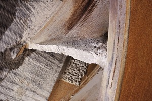 Marek Górnik: In 2000 line 5 was also converted from the wet to the dry process. We then observed a greatly shortened service life of the fans due to wear taking place inside them (Figs. 6a and 6b). At that time, 1997, wear protection of the impellers was provided by chromium carbide with a Rockwell hardness of 60–62. Despite these relatively hard wear protection linings, the service life of our fans only amounted to approximately 4 to 5 months.