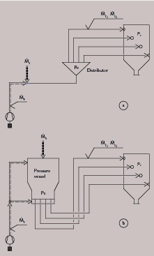 When an industrial process/a reactor is to be pneumatically fed with a solid material via several, simultaneously supplied feed points, one of the requirements is uniform distribution of the solids mass flows. To enable a precise calculation of the individual flows and total flows, numerous parameters are required.