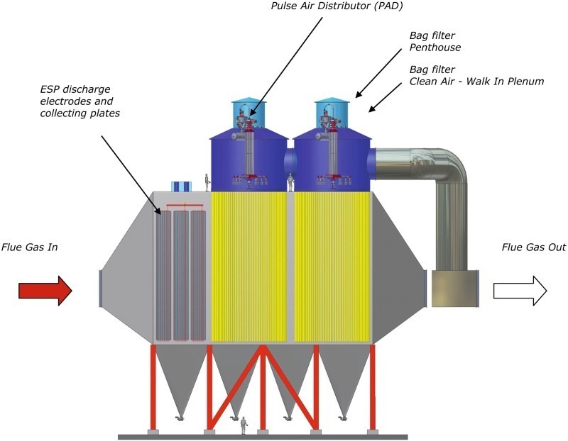 When retrofitting existing ESPs, a logical consideration is to evaluate the possibility of combining the ESP facilities with the pulse-jet bag filter facilities in one unit. As it is not very costly to maintain part of the ESP – and the pulse-jet bag filter could benefit by a pre-separator - the transformation into a so-called hybrid filter is obvious.