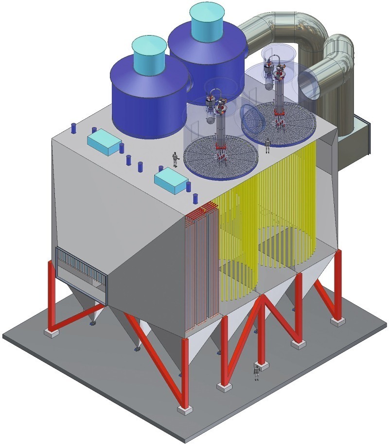 Unlike traditional filter technology, the SimPulse 3CS filter modules provide for the required filter area without any need to expand the existing ESP housing. The SimPulse 3CS filter modules are vacuum resistant, – no need for extraordinary pressure-reinforcement of a traditional Walk In Plenum (Fig. 3). The concept is based on standard modules which are easily implemented into existing ESPs, involving only a small amount of engineering work.