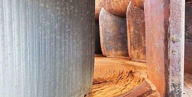 “That’s why it is important for the process gas fans to carry out an optimal aerodynamic design of the fan in order to guarantee a free-from-defect operating efficiency”, comments Mr. Christian Pohl, Business Development Manager at Rotamill. Furthermore, wear and tear protective systems such as hard-wearing sheet metals, powder coatings and composite armour plates with different carbide compositions as secondary protective measure are imperative alongside the aerodynamic construction. The Rotamill engineers do use a layer thickness of up to 5 mm and a surface hardness of up to 65 HRC.