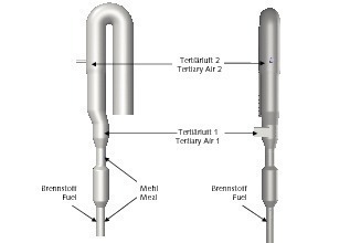 This situation prompts the question of how the two contradictory demands – reliable burnout of the fuel on the one hand and uniform calcination on the other hand – can be efficiently combined in the calciner. The task arising is to transport the heat from the initially occurring fuel oxidation to the meal that has to be calcined. Naturally, flow and mixing processes play the decisive role here. For this reason, process-technological optimization is aimed at achieving the most suitable concentration and temperature fields within the calciner.