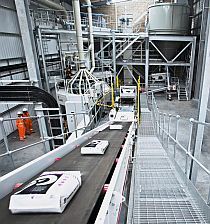 In former times requests for durability, operational reliability and long machine lifetimes were at the focus. But today customer demands also include higher speeds, cleanliness, weighing accuracy, high levels of product protection, ease of operation and ease of maintenance. And now there are also the demands for environmental protection, energy savings and new types of packaging materials. These demands can be handled using the HAVER INTEGRA® and ROTOSEAL® system and the proven valve-bag for small and large outputs. In addition it is now possible to fill powder-type products into water resistant PE bags (Fig.), which assure far greater product protection. This was made possible by combining a new machine concept together with a new bag concept. This technology is presented under the names of THE ADAMS® and THE BENJAMIN® at the POWTECH. THE ADAMS® is a rotating high-speed system equipped with 8 or 10 filling spouts which allow packing speeds of up to 1200 bags/hr. THE BENJAMIN® is the compact variant of the ADAMS system and has 1– 4 filling spouts. It’s ideal for medium-size capacities in bags from a continuous PE film tube. Compact size and high flexibility are the prominent features of THE BENJAMIN®.