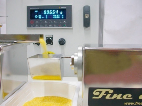 S.S.T is introducing onto the German market a new brand of gravimetric micro feeders and powdering machines under the brand name MCPI Fine dosing. Thanks to an exclusive principle of extraction, highly developed, the “Fine dosing” system sets new standards in precision, speed and user-friendly operation (Fig.). The product is dosed in a small swivelling bowl fitted onto an accurate load cell. Sensitive parts such as drive and scale are protected in a stainless steel housing. At the end of dosing stage, the bowl is emptied by rotating it 180 °. The integrated batch controller optimizes coarse and fine feeding with automatic tolerance control. The fine dosing concept allows permits a coarse/ fine dosing ratio of 1/50.