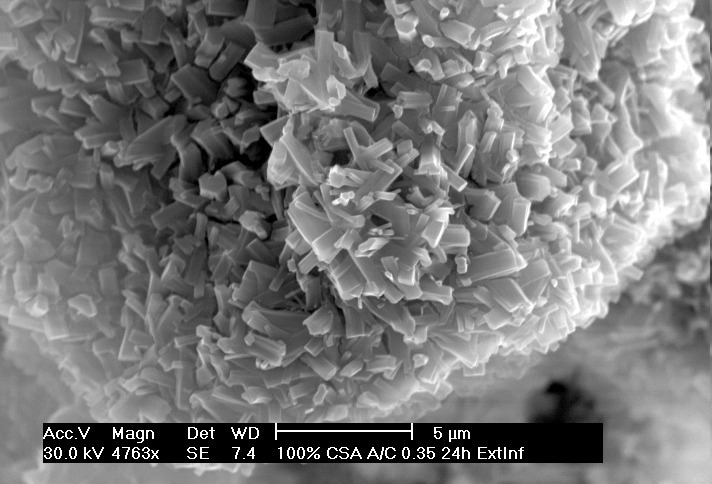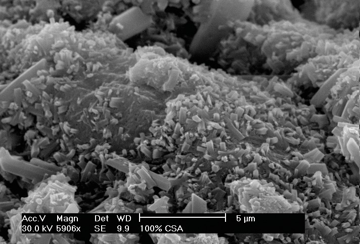 Two industrial CSA-based cements, S.  A. cement SR03 (Figs. 1 and 2) and S.  A. cement SL05, were investigated. They were obtained from the same sulphoaluminate clinker, produced at about 1330 °C by burning a raw mix consisting of limestone, bauxite and gypsum. Into both cements a set retarder and a hardening accelerator were introduced. SR03 contained natural gypsum; SL05 was a mixture of CSA clinker with a limestone Portland cement (CEM II/A-LL 42.5 R ), and anhydrite.