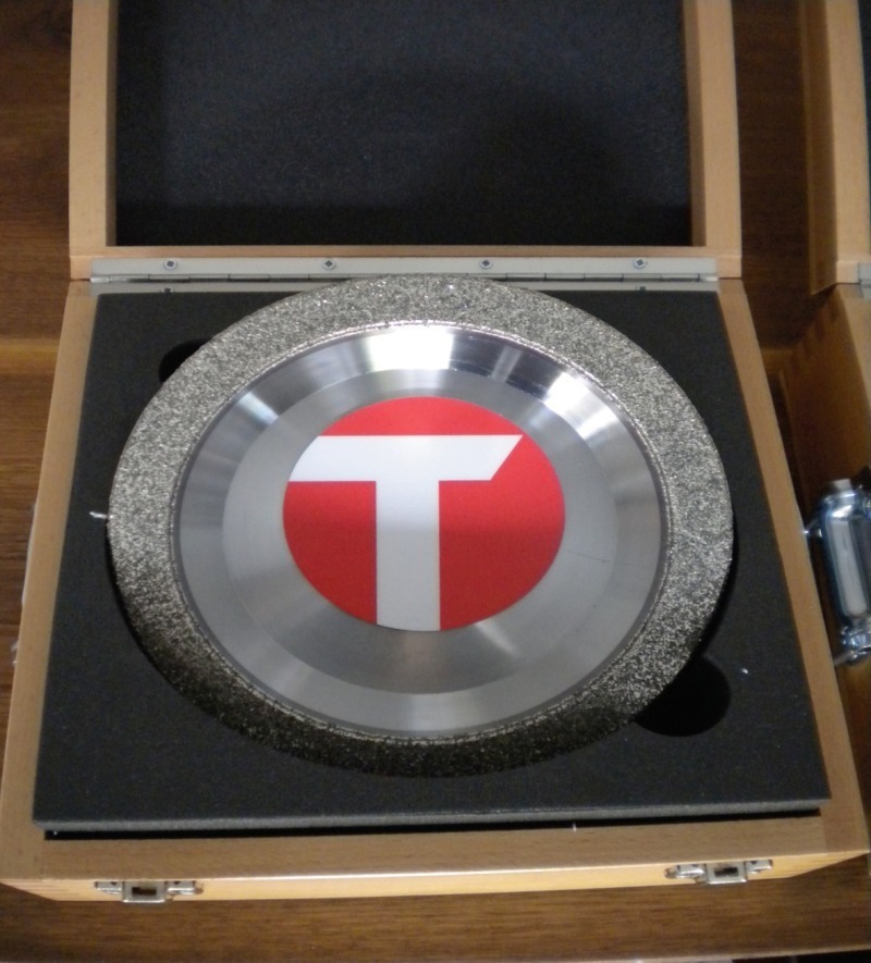 After a series of workshop tests, a special cup grinding wheel was developed for this application (Fig. 2). The machining unit (Fig. 3) was designed in such a way as to permit its use for various face lengths and roller diameters. Great importance was also attached to a compact design which would permit air freight