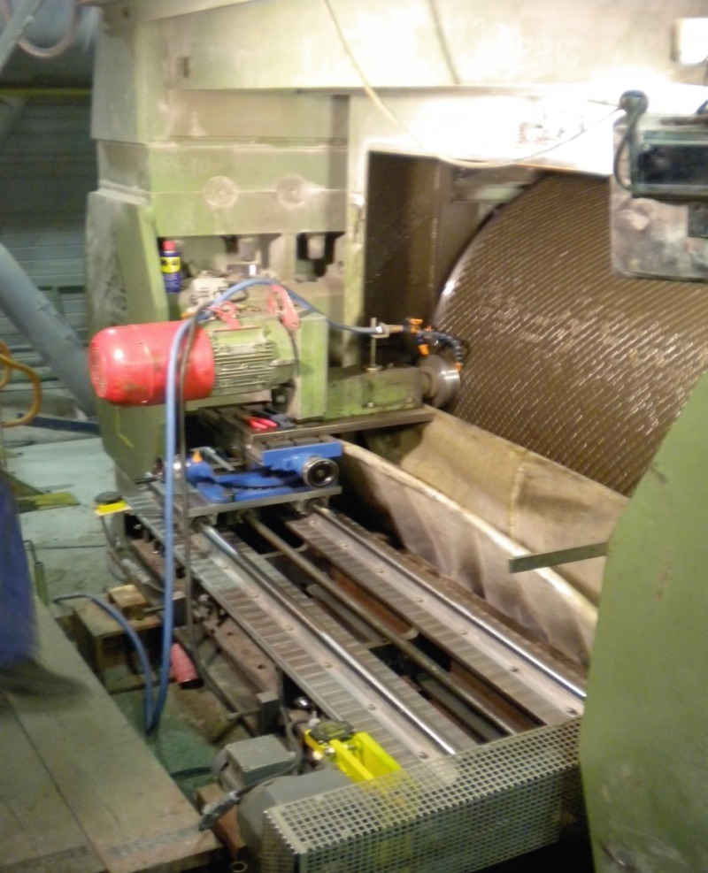 The rollers were turned by the mill‘s existing auxiliary drive and simultaneously machined by the high-precision grinding systems. Frequency control permits selection of the best possible in-feed rate. The special grinding abrasives used (Fig. 8) are cooled with water. This cooling-water is recirculated by means of pumps.
