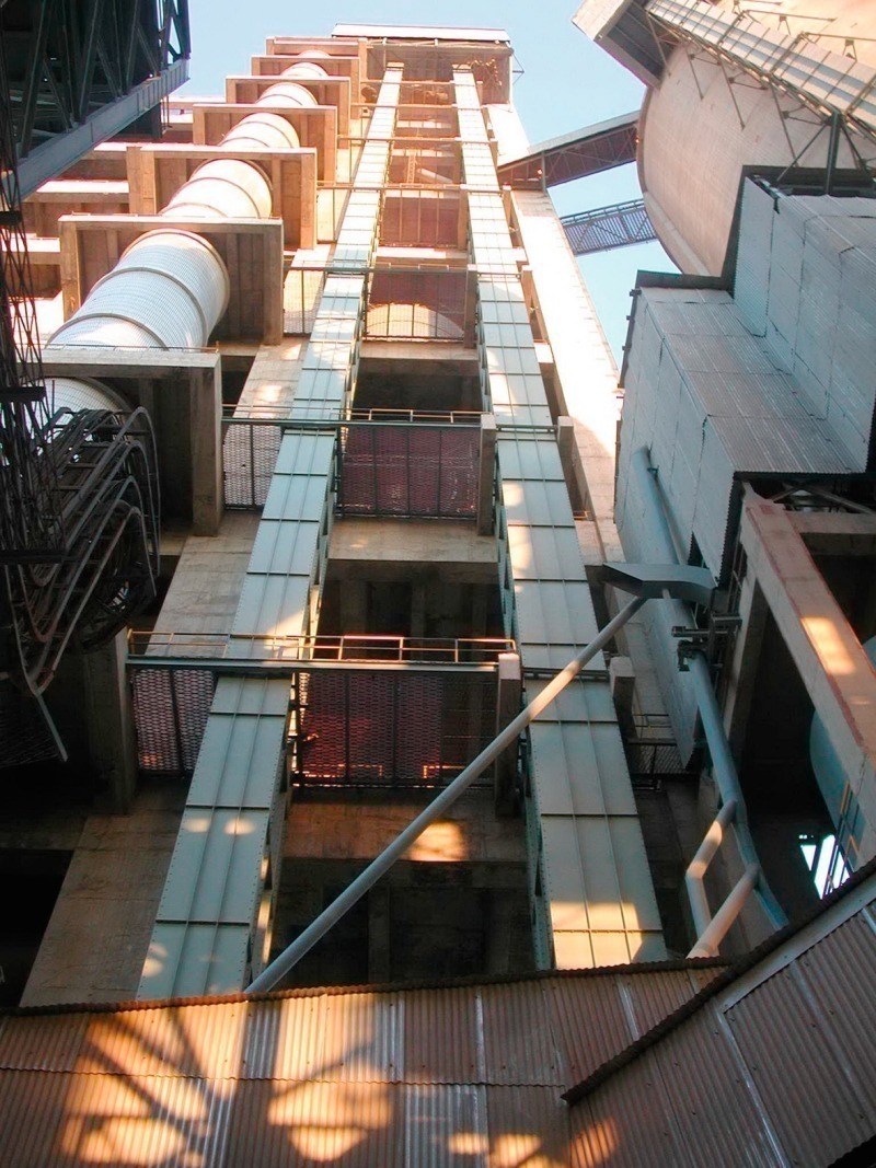 Another important step in conveying technology at BEUMER was the development of the bucket elevator. Bernhard Beumer, the son of the company founder, pushed ahead with this technology. He quickly recognised that a chain is too heavy as the traction element. Its weight cancels out a great deal of the traction force. By that time BEUMER was already an expert in the field of belt conveyor technology. This gave the second Bernhard Beumer the idea of using a belt as the traction element for bucket elevators. He used a belt with steel cords in order to attach the buckets reliably to the belt. He arranged the steel cords so that there were zones with cords and zones without cords. The holes for attaching the buckets to the belt are punched in the zones without cords. With these bucket elevators BEUMER had created a conveying technology that could operate at significantly higher speeds and could use longer distances between centres (Fig. 4). The belt bucket elevators from BEUMER now reach distances between centres of 175 m or more. By the mid 80s BEUMER had installed about 100 bucket elevators, but in 2007 and 2008 this figure had increased to about 450 bucket elevators worldwide per year! The second Bernhard Beumer had not only pushed ahead with product development in conveying technology but also with specialization of the company in the three sectors of conveying and loading, palletizing and packaging and sorting and distribution. He also made decisive moves to set the Group on course towards internationalization and, among other things, formed companies in Brazil, the USA and Asia.