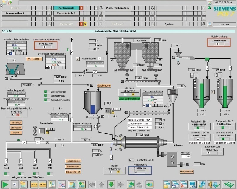 The Burglengenfeld cement plant (Fig. 1) in Bavaria was founded in 1912 and is one of the first factories belonging to the HeidelbergCement Group. Until recently, it was controlled by the process control system CEMAT V4. Today, this system is outdated. There is no more replacement equipment available for its basis, SIMATIC S5. In January 2009, the first step towards modernization was undertaken. The system shifted to SIMATIC PCS 7 with