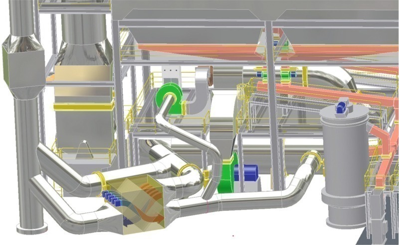 – Partial replacement of recirculating air with preheated fresh air => lowering of dew point => potential for lowering the mill outlet temperature (if not restricted by other factors). Replacement of moist recirculating gas with preheated fresh air is expected to have beneficial effects on mill operating behaviour and product quality.