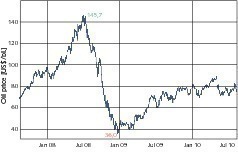 In political matters the Near and Middle East is often reduced to the Israeli-Palestinian conflict, the post-war reconstruction and terror bombing in Iraq, Iran’s nuclear programme, the war in Afghanistan and Islamic terrorism. From an economic viewpoint, the enormous oil wealth of the region dominates the headlines. Until summer 2008 the oil economy still seemed to be secure. Up to then, speculators had driven oil prices up to a record level in excess of US$ 145 per barrel (159 litres). Then came the US real estate crisis in summer 2008, which burgeoned into a worldwide financial crisis during which Lehman Brothers had to file for bankruptcy in September 2008 and oil prices nosedived rapidly (Fig. 1). After banks wrote off financial assets worth billions of dollars, foreign investments involving hundreds of billions of petrodollars simply evaporated.