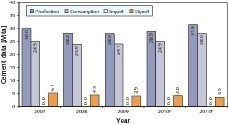 After a temporary slump in cement consumption growth in 2009, with its increase of only 0.9% to 38.4 Mta and a decline in exports, the country has returned to a positive climate for the cement industry (Fig. 3). The forecast for 2010 is a strong growth of 5.4% in cement consumption, bringing it to 40.5 Mta, so that consumption will approximately keep pace with the economic growth. Cement output is expected to rise to approx. 41.1 Mta. Up to 2013 the cement producers consider it ­possible that cement consumption will increase further at annual growth rates of 4.5%. If exports and imports ­develop as shown, cement consumption will rise to 46.2 Mta and ­production to 46.5 Mta. The per capita cement consumption is expected to rise from 158 kg to 180 kg. As a consequence, the overall outlook for the coming years is a rosy one. The present capacity utilization of 80.5% demands new investments.