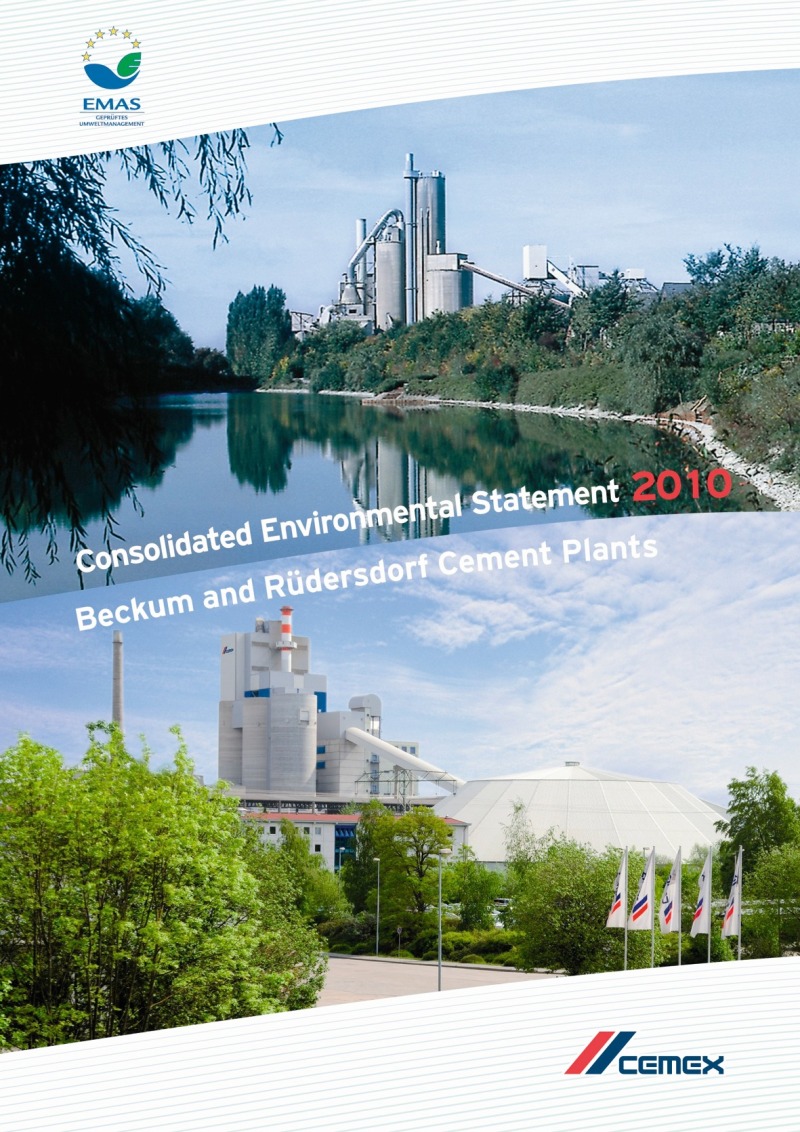 Cooperation between Westphalia and Brandenburg: for the first time ever, a consolidated Environmental Statement by CEMEX‘s Beckum and Rüdersdorf cement plants has served as a basis for the voluntary EU Eco-Management and Audit Scheme (EMAS). The plants received the EMAS certificate on 15.04.2010. For the next three years, the two cement plants can now use the exclusive EMAS logo in connection with their operational environmental protection meas-ures. IHK Managing Director Gundolf Schülke (IHK, the German Chamber of Industry and Commerce) presented the EMAS certificate to CEMEX Managers...