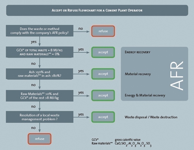 Every country and practically every cement factory has its own chances and possibilities for the co-processing of waste ma-terials. The ability to utilize knowledge from other projects all around the world is an advantage. Among the most important prerequisites are the existence of corresponding statutory directives, the obtaining of a licence and the installation of suitable storage and dosing equipment for the kiln system. One of the problems involved in the co-processing of wastes in these countries is that there are few incentives, hardly any dumpsite controls and little awareness of the advantages of cement plants compared to environmentally problematic refuse incineration plants. The consequent lack of financing, lack of technological infrastructure and weaknesses in the application of statutory requirements are the main reasons why the possibility of environmentally-friendly waste disposal in cement plants has so far been only inadequately exploited [13].