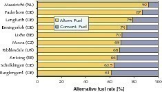 materials), already make up about 40% of alternative fuels, followed by waste tyres and rubber scrap (23%), animal meal (9%) and waste wood and agricultural materials (7%). Solvents and waste oil make up a 7.2% portion. HeidelbergCement and other major cement producers are promoting the use of so-called biofuels, as these are regarded as environmentally neutral with regard to CO2 emissions. Apart from animal meal,