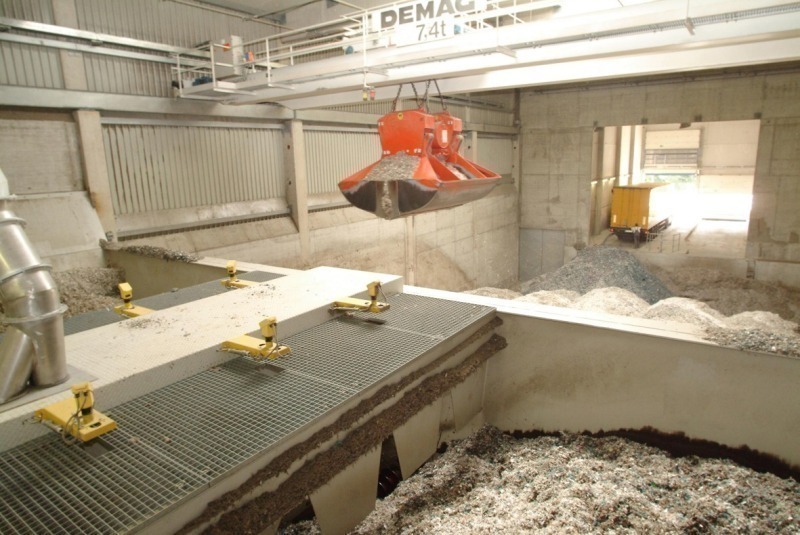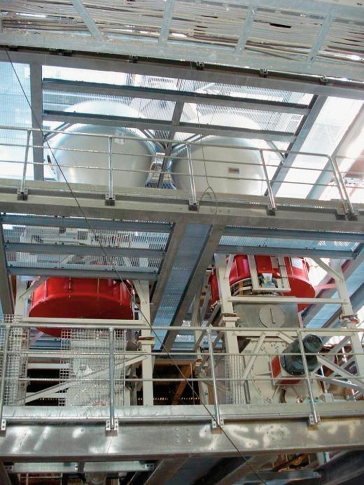 A number of waste handling solutions are employed at cement plants. Handling of tyres and rubber wastes (Fig. 9) in automatic operation requires complex material feeding and separating units. Liquid fuels such as waste oil are far easier to handle and dose (Fig. 10). Solid fuel mixtures such as RDF demand a greater amount of equipment (Fig. 11) [4]. Different alternative fuels are delivered via so-called docking stations for truck trailers (Fig. 12). Continuous supply to the burner becomes problematic if not enough buffer volume is available. Enormous halls are needed for the storage of large quantities of alternative fuels and an adequate buffer volume (Fig. 13). The downstream processes are primarily determined by the nature of the dosing devices. In modern systems, multi-material dosing systems are generally used (Fig. 14). Correspondingly high demands are also placed on the calciners and multi-fuel burners [5–7].
