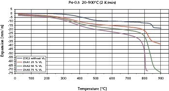 Common to the dilatometric measurements on AAC [1-3] that have been published so far is the finding that there is slight shrinkage up to temperatures of 700 °C to 800 °C followed by severe shrinkage up to about 850 °C. The strong tendency to shrinkage caused by reversible adsorption of water and incorporation as interlayer water is characteristic of the less well crystallized tobermorite phases [3, 4].