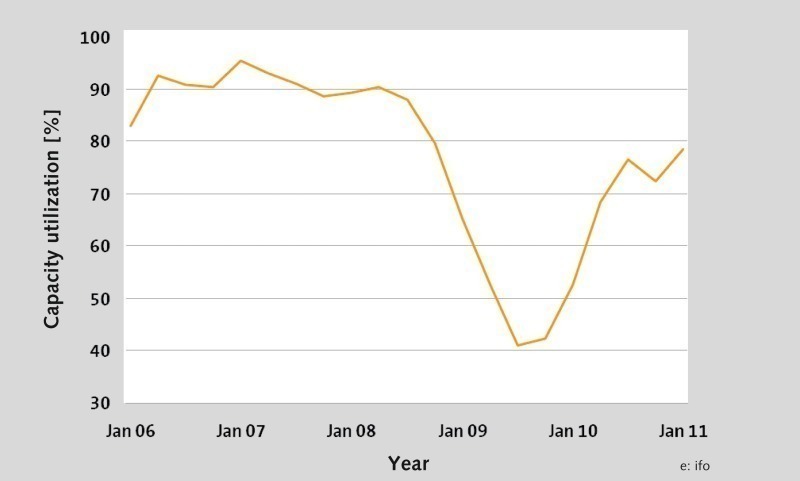 However, with regard to incoming orders there is a different development. Already during the second half of last year, demand grew significantly in all areas. Manufacturers of construction equipment currently have 56 % more incoming orders, whereas in building material machinery there are 34 % more than in the same period in 2010.