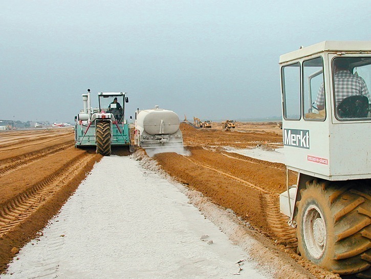 The 2001 edition of the building lime standard did not include civil engineering applications (Fig. 4) for lime and dolime products. It had been necessary to apply national rules here, since CE marking of building lime was not covered in this sector. It was specified, in order to assure uniform European procedure, that the building lime standard applies to building lime used for: