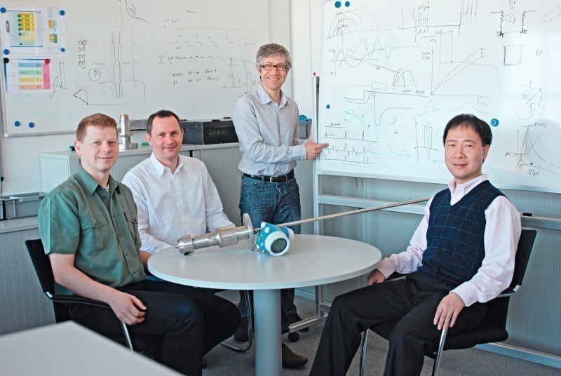 The three “Patent Rights Incentive Awards” for patents with special business relevance, each with a cash prize of 15 000 €, went to inventors from the production centers Endress+Hauser Conducta, Endress+Hauser Flowtec and Endress+Hauser Maulburg. With their invention, Dr. Dietmar Spanke, Edgar Schmitt, Marc Baret and Yong Jin of Endress+Hauser Maulburg, the production center for level and pressure measurement, have enhanced the measurement reliability of radar level measurement instruments (Fig.). The four inventors have now developed a method in which every echo is continuously recorded and identified. The level echo is now determined from the dynamics of the echo and from previously recorded values. This method substantially increases the measurement reliability.