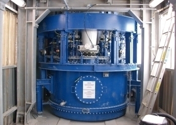The CT proportioning device consists of a cylindrical container, which, depending on the fuel, normally is pressure shock resistant up to 10 bar (according to the pulverized fuel specification). In the lower part of the container there is a fluidized bottom on which the product to be conveyed is stored. If air is pressed in via a blower with a low velocity from below through the bottom, the product is fluidized, i.e. it expands by about one third as opposed to the basic volume and assumes liquid-like properties.