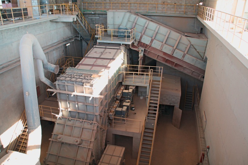 The UNIT 2 preheater takes the form of a double-train, six-stage preheater incorporating ILC. The plant is equipped with ultra-modern advanced technology. Kiln feed material is routed via the bucket elevator. A switch gate divides the feed flows to the kiln train and the preheater train. Clinkerisation takes place at temperatures of between 1350° C and 1400° C. Around 18 to 22 minutes are required for the material to pass through the rotary kiln. Downstream of the kiln, the clinker is efficiently cooled in the Polytrack® cooler and then fed on pan conveyors to a clinker silo (Fig. 10). Non-specification clinker can be discharged into a special silo if operating problems occur.